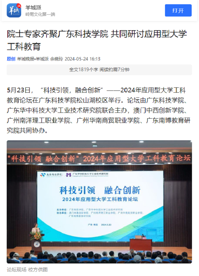 【羊城派】院士专家齐聚广东科技学院 共同研讨应用型大学工科教育-和记娱乐手机