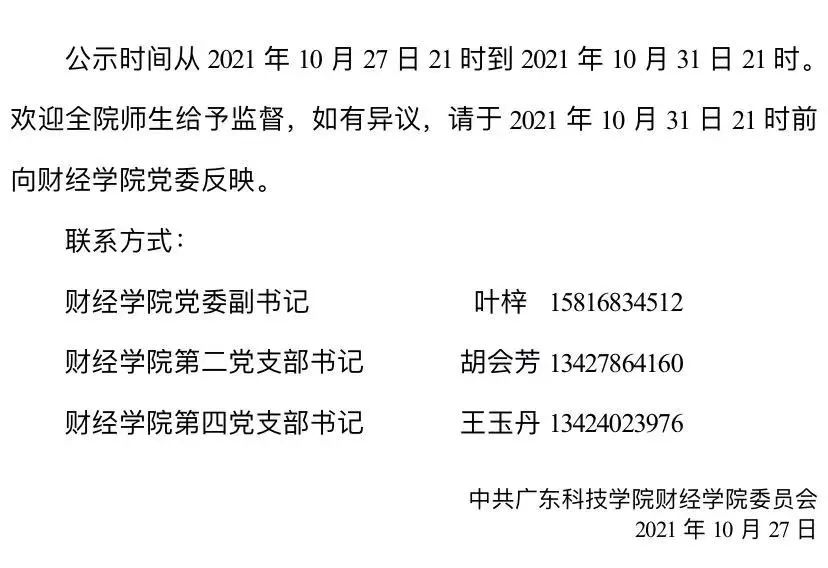 为认真贯彻发展党员工作“坚持标准、保证质量、改善结构、慎重发展”的方针,进一步加强对发展党员工作的民主监督,严把发展党员的“入关口”,保证新发展党员的质量。栉风沐雨传捷报,披荆斩棘谱新篇。财经学院第33期业余党校入党积极分子党课结业考试已于2021年10月20日圆满结束,现将党课结业考试合格名单公布如下。