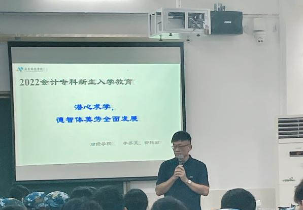 柳艳丽老师从人才培养目标、人才培养模式、能力培养等方面对大数据会计专科专业进行了详尽的介绍,让学生了解未来三年的学习计划,并强调了我校大数据会计专业实行“本专科师资共享”“毕业证书+职业资格证书”“人职匹配、实践育人”的培养模式。李苏亮教授从“德智体美劳”五个方面分享和告诫学生要潜心求学,不要虚度光阴,祝愿所有的学生都能学有所成。