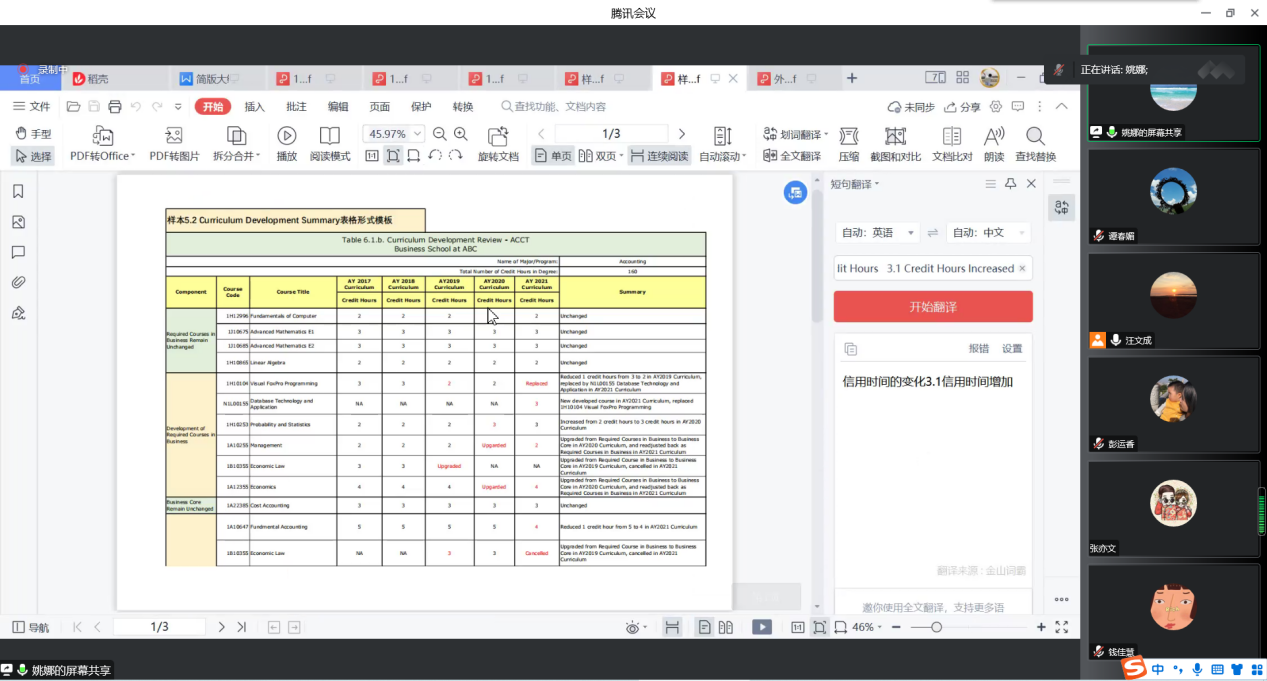 最后汪老师和姚老师对各位老师提出的疑问一一作了详细的解答,让各位教师更加清晰了填写要求。同时提醒任课教师需尽快完成过程性文档填写和佐证材料的搜集工作,课程负责人要完成教学大纲简版的填制和上传,各专业建设负责人要跟进好这项工作。