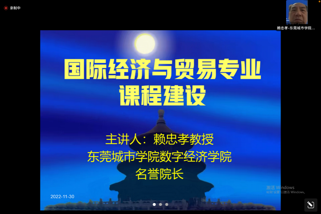 东莞城市学院数字经济学院名誉院长赖忠孝教授就东莞城市学院国际经济与贸易专业课程建设进行介绍。赖教授表示,数字经济学院在国贸专业建设中始终坚持创新人才培养模式、建设高水平师资队伍、丰富教学资源、加强理论与实践结合、紧跟外贸发展形势的五条基本思路。同时指出国贸专业在建设过程中存在的问题,并希望通过本次会议,能够促进各院校国贸专业的合作与交流。东莞城市学院陈慧副教授和张超老师分别从线上线下混合式教学的设计与应用和省级在线开放课程《国际贸易学》的建设方面进行分享。