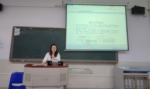 接着黄楚娜老师向全体教师讲解后续论文指导工作注意事项:1.涉及申请该题的导师,依次学生、论文组长和评阅老师商讨后,才可提交;2.收集论文佐证材料,要按照统一要求命名;3.针对申请换题和考研学生(如需延后),在1月10日前应通过评阅工作;4.核查学生的数据真伪,建议各位老师要求学生发数据来源、网站给大家查阅,以免出现数据问题。