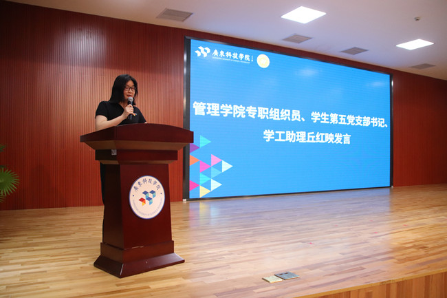 2022年6月10日下午16点30分,广东科技学院管理学院于南城校区图书馆7楼举行“喜迎二十大,奋进新征程”主题教育活动暨表彰大会。本次活动共六个流程,参加本次活动的有:管理学院党委副书记、副院长简添,学工院长助理丘红映、吴文升,部分党支部书记,团学指导老师,各专项负责老师与学生党群服务中心、团总支学生会、副班导、年级级委等学生代表。