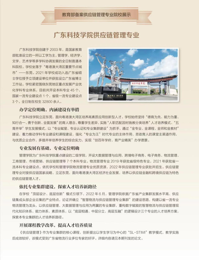 2022年12月刊封二宣传了我校办学模式,介绍了我校概况、办学定位及内涵建设,重点推介了管理学院供应链管理专业定位、智慧物流与供应链管理专业集群建设思路、《供应链管理》课程教改等。同期刊发了我校《供应链管理》课程组撰写的“以学为中心”教改论文:新文科背景下《供应链管理》课程“sl-stimi”教学模式研究与实践。