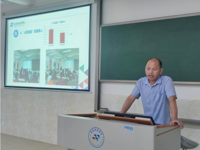 智科专业建设负责人张龙青、教研室主任朱鹏主要从师资情况、教改类项目、教研类项目、高水平科研、师生获奖等方面对本学期的工作内容进行全面总结。目前,已申报高等教育教学改革项目4项,特色专业1项,校企联合实验室1项,大学生社会实践教学基地1项,课程思政示范教学团队1项,课程思政示范课程1门。落实课程评估,优质课程2门。申报东莞市哲社课题1项,广东省哲社课题1项,广东省教育厅高校科研平台和项目1项。指导学生获国家奖5项,省级9项,教师获奖,国家级1项,校级2项,院级1项。邀请1家企业人员进行校企合作交流。
