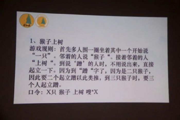 所有学员们围坐成一圈,由其中一名学员开始喊出口令,邻座的学员紧跟着呼喊出口令,依次类推完成全部游戏流程,以此考验学员们的随机应变能力,加快学员们的思考速度。