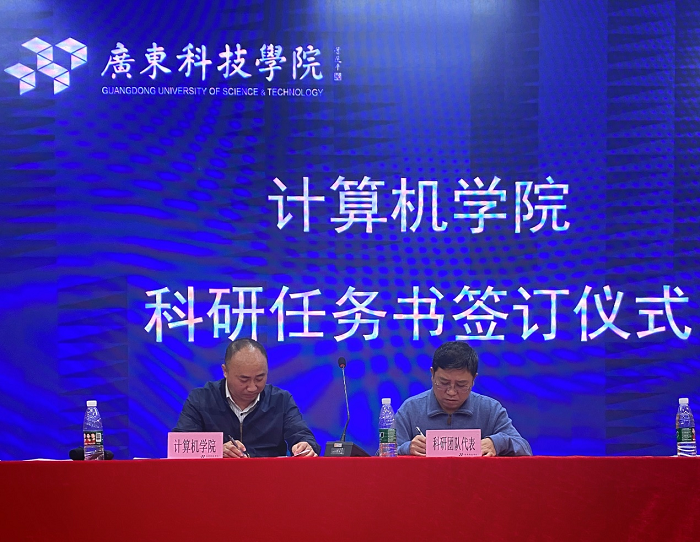 会议第四项议程,举行高级职称、博士、科研团队科研任务书签订仪式。计算机学院副院长刘肃平分别与教授代表聂军、副高代表杨磊、博士代表张龙青、科研团队代表李树华签订科研任务书。希望各高级职称、博士、科研团队能够发挥示范引领作用,凝练特色、群策群力,提高团队的教学、科研能力,带动学院整体科研水平提升。