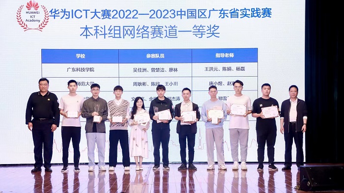 通过融合校企双方优势资源,以“定目标、重落实、争佳绩”的三步曲落实到大赛实施工作中,经过三个月的准备与角逐,广科在华为ict大赛2022-2023中国区广东省实践赛中斩获多项殊荣,再显佳绩:分别荣获网络赛道本科组一等奖1队、二等奖1队,计算赛道本科组一等奖1队、三等奖1队,云赛道本科组二等奖1队、三等奖1队,且樊勇、王洪元、杨磊、陈婧四名指导教师荣获优秀指导老师奖项,详细名单如下。