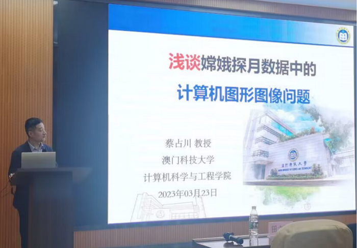 为进一步提升学院师生科研素养,培养科研创新意识,营造浓厚学术氛围,3月23日下午15时,学院邀请澳门科技大学计算机科学与工程学院助理院长、博士生导师蔡占川教授在l6-101作了题为《浅谈嫦娥探月数据中计算机图形图像问题》的讲座。讲座由樊勇副院长主持,田立伟院长出席了本次讲座,计算机学院部分专任教师和同学来到现场聆听。