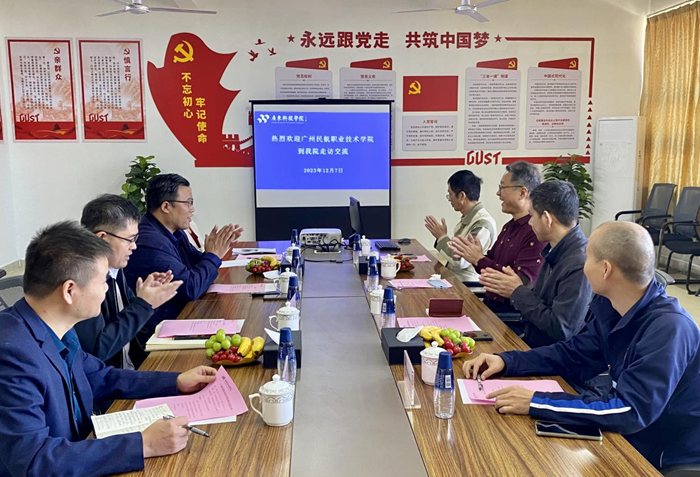2023年12月7日上午,计算机学院与广州民航职业技术学院在松山湖校区c1-319会议室召开交流研讨会。广州民航职业技术学院电子信息工程学院书记兼院长高文会,副院长陈海涛,教工支部书记洪锐锋,大数据专业教研室主任廖勇毅;广东科技学院计算机学院院长田立伟,副院长樊勇,数据科学与大数据技术专业建设负责人孙玉明、教研室主任王华出席本次会议。
