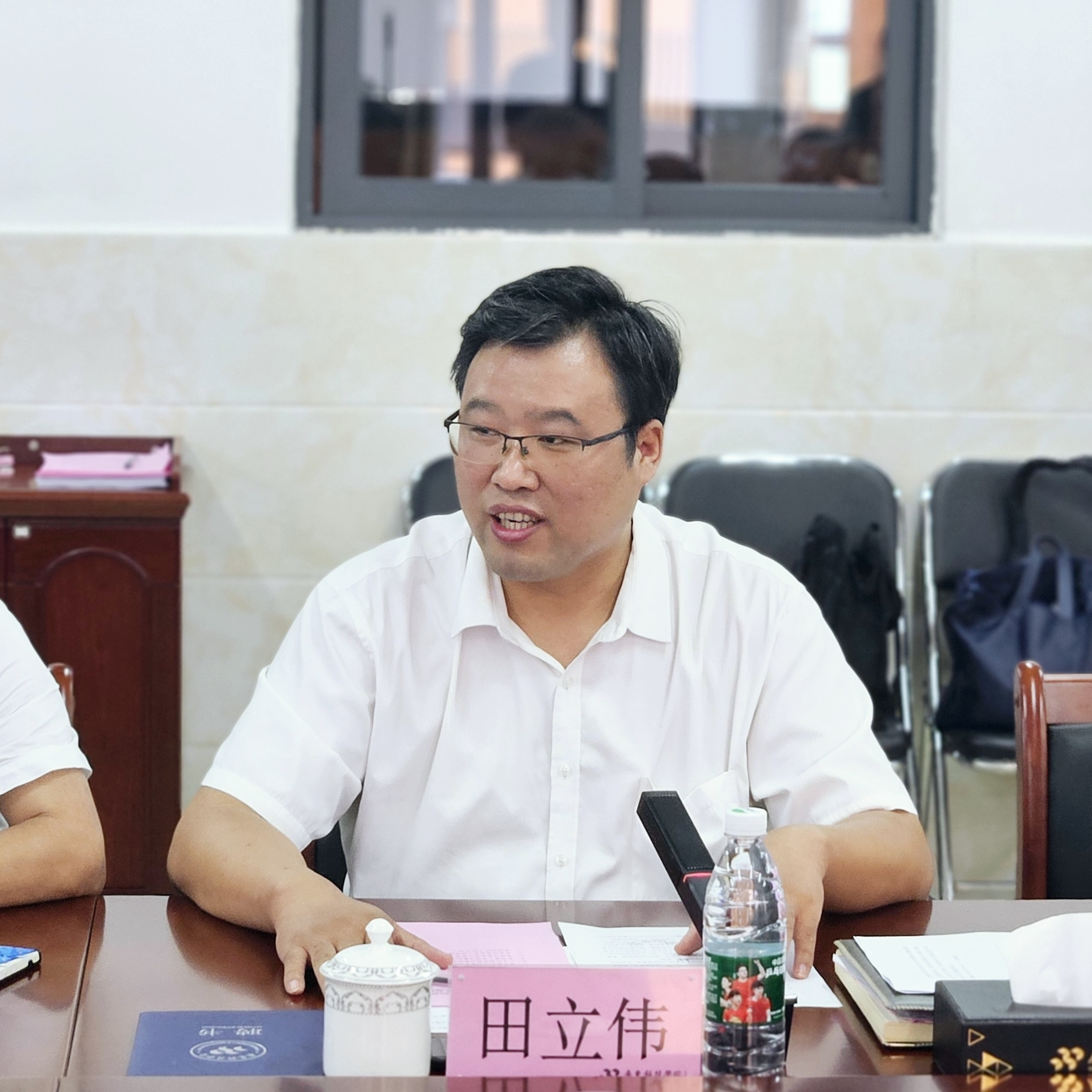 会议的最后一个议程是郝易路同学作为研究生代表发言。郝易路同学首先感谢了两校领导和导师们对他们的关心与支持,表示作为联合培养的一员,他们深感荣幸,也意识到自己在促进两校学术交流与合作中发挥着桥梁纽带的重要作用。接着,郝易路同学表示,联合培养为他们提供了更广阔的学术平台和更丰富的资源,使他们能够接触到不同学校的优秀师资力量和前沿研究成果。他呼吁大家要充分利用这些资源,积极探索新的研究领域和方法,提升自己的实践能力、创新能力和学术水平,拓宽学术视野。最后,双方围绕研究生联合培养细节、学科建设等内容进行了深入交流和探讨。