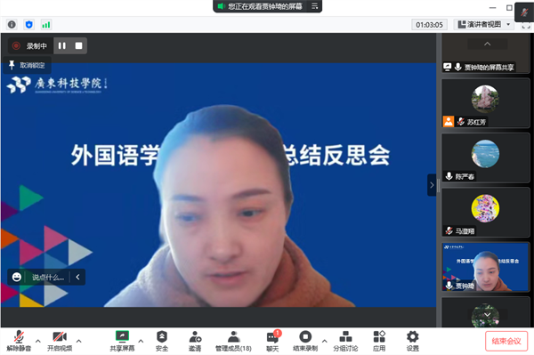 贾钟琦总结指出,今年取得成果主要有立项东莞市哲学社会科学规划课题1项;申报教育部产学合作协同育人项目4项;横向课题拟到账经费38.86万元;邀请校内外专家开展教科研活动;校长书记访企拓岗专项行动;开设跨境电商精英班和直播班。但是也认识到省部级以上科研项目较少;教学与科研衔接松散;学生参与科研率较低;已有课题管理不到位;头部企业数量较少等。并表示,在今后工作中加强学院科研机制建设,注重教学与科研相结合,加强教师科研培训工作;继续探索校企合作新模式,寻求优质企业,提高学生薪酬。