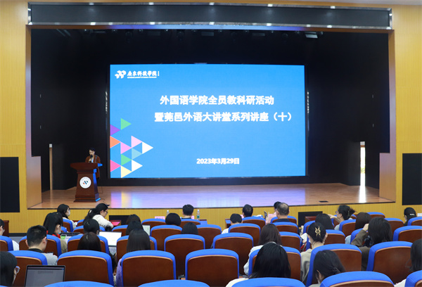 2023年3月29日下午,外国语学院在松山湖校区5-102召开全员教科研活动暨莞邑外语大讲堂(第十讲)。邀请广东外语外贸大学孙毅教授开展题为《如何撰写文献综述类论文?兼论当代隐喻学在中国(1994-2013)》的主题讲座。外国语学院全体教师参加讲座。讲座由外国语学院科研与产学研副院长贾钟琦主持。